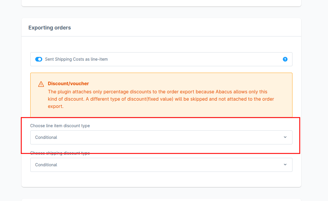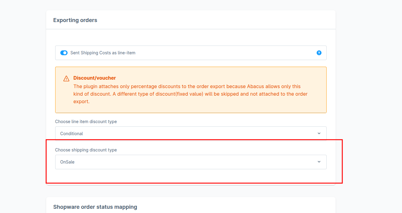 - In der Plugin-Konfiguration bitte den Rabatttyp für den Versand festlegen: