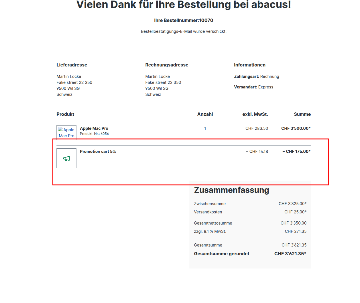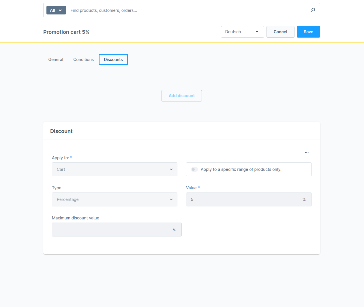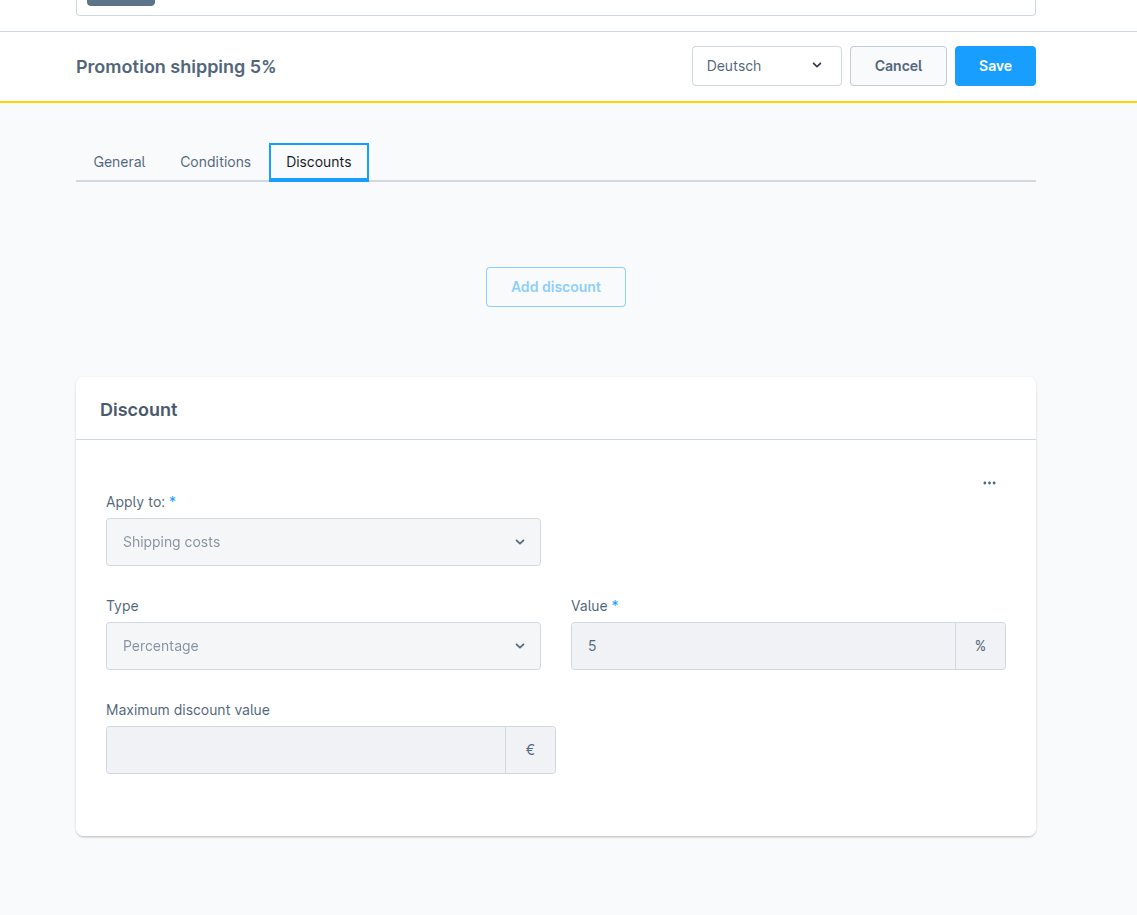 - Prozentuale Promotion für den Warenkorb erstellen:
